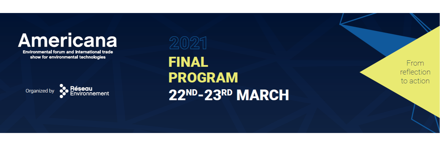 Americana — Environmental forum and International trade show for environmental technologies — is recognized as the leading multi-sector event of its kind in North America. Featuring over 60 conferences, workshops, panels discussion, trainings, actuality session, the event also welcomes 100 exhibitors and 5,000 visitors from over twenty different countries. Americana offers an ideal forum for technical, scientific, and business discussions regarding key issues in the environmental sector. This major industry event will take place from March 22 to March 23, 2021, online.